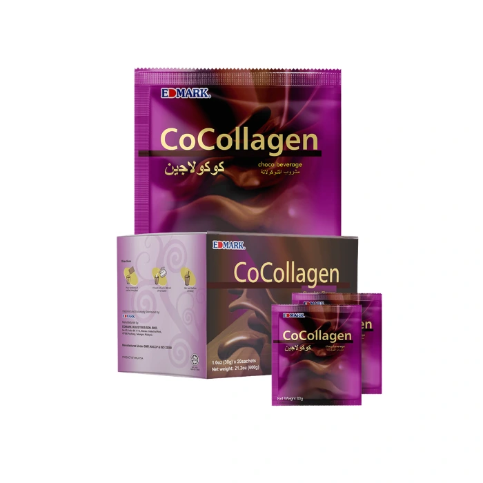 كوكولاجين من ادمارك هو مشروب غذائي بنكهة الشوكولاتة الغنية يحتوي على كولاجين بحري ومزيج من المكونات الغذائية تم تصميمه ليكون جزء من نمط حياة صحي يدعم نضارة البشرة ومظهرها الطبيعي.